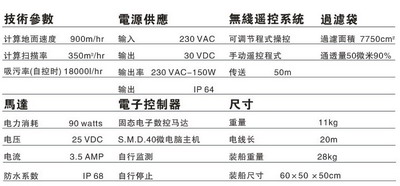專利轉環,使自動機械清潔器的動力電纜不會糾纏結;水線清潔程序,使機器沿泳池邊絕緣體進行清潔:獨有的Laps Pool清潔程序:頻率控制池壁爬高:超清潔程序用于更徹底的清潔:過濾袋阻塞指示燈。