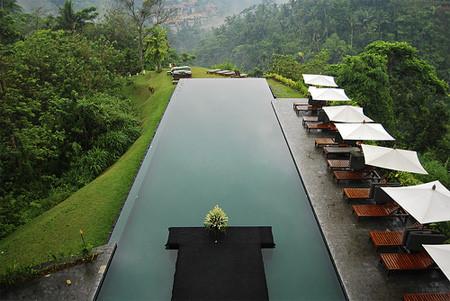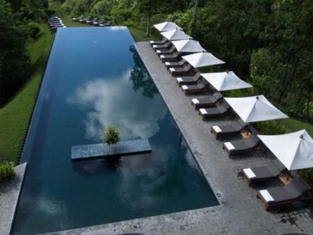 巴厘島度假酒店的無盡游泳池,特殊的邊緣設(shè)計讓泳池仿佛一塊沒有包邊的平鏡