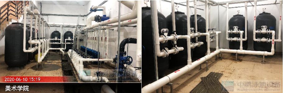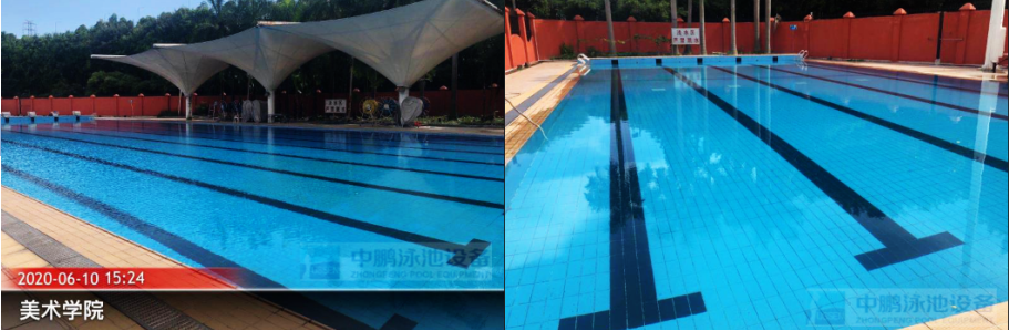 近日由我司廣州中鵬康體設備有限公司承建的廣州美術學院大學城校區游泳池水循環系統配套設備及安裝服務工程。室外用泳池工程配套設備,泳池采用混流式運行,水溫常溫:標準池面積約1250平方,水深1.6m~2.0m;平均水深1.8m,容積約2230立方;訓練池面積約312平方;水深1.1m~1.4m,平均水深1.25m;容積約390立方;循環周期5-7h;過濾流量:360立方/h;用電量:55kw。泳池設備包括有,循環過濾系統、水質凈化消毒系統、電控系統等。循環過濾器、消毒器、水下照明燈、水質監控系統、采用我司菲臣FUSSEN品牌的高品質循環水泵、過濾砂缸和泳池水下燈,投藥裝置是用意大利著名品牌Seke,全程監控水質情況,電氣系統包括泳池機房控制柜上樁及泳池水下燈具全部電線動力控制安裝,一流的技術有效的速率,項目已經順利完工正投入使用得到校方非常滿意認可。
